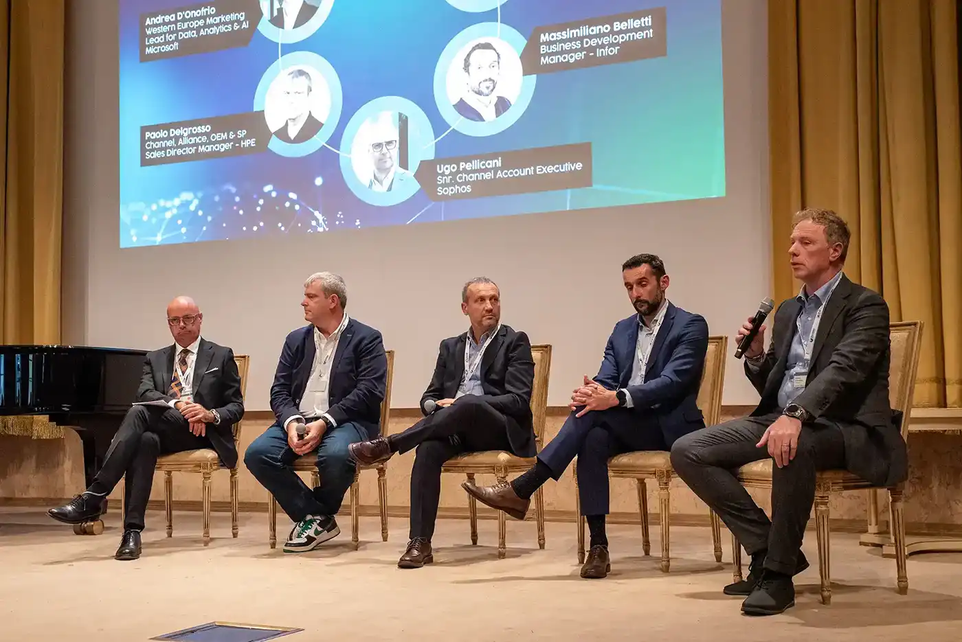 Dopo il benvenuto di Fabrizio Montali, sul palco si sono alternati Andrea D’Onofrio, Western Europe Marketing Lead for Data, Analytics & AI di Microsoft, Paolo Delgrosso, Channel Sales Director di HPE Italy e Ugo Pellicani, Snr. Channel Account Executive di Sophos, portando esempi concreti e soluzioni derivanti dall’applicazione di tecnologie di intelligenza artificiale all’interno delle imprese.