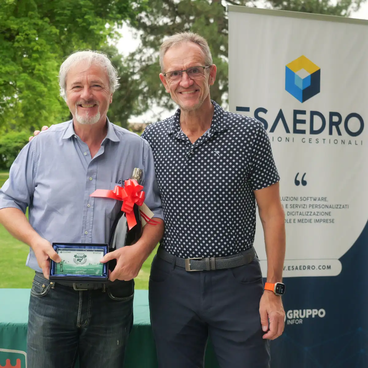 Sul finire del torneo principale, è stato un gruppo di dipendenti di Gruppo Infor a prendere posto sul green, sotto la guida attenta del Maestro Andrea D’Agostino, per una sessione formativa piuttosto divertente. L’attività si è conclusa con una bella sfida di approcci e putt, che ha permesso ai partecipanti di avvicinarsi al mondo del golf in modo guidato, con un lavoro a coppie dove è servito un ottimo spirito di squadra oltre ad una buona concentrazione. Per Infor ed Esaedro, che complessivamente oggi contano oltre 110 dipendenti, il Trofeo Gruppo Infor non è solo una competizione sportiva, ma un’occasione speciale per rafforzare i legami tra colleghi, clienti e partner.